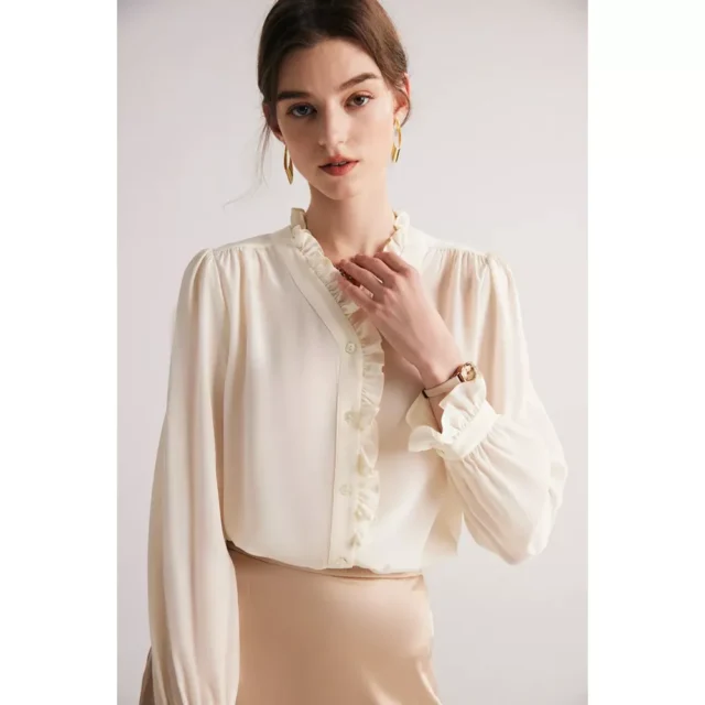 Discover Elegance with Our Silk V-Neck Ruffle Blouse