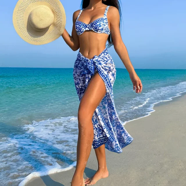 Make a splash in style with this stunning Blue Floral Korean Bikini Set – the ultimate beachwear for women who love to feel confident and chic. Inspired by trending Korean fashion, this 2-piece swimsuit comes complete with a matching beach cover-up, offering the perfect blend of fashion and functionality. Whether you’re lounging poolside or strolling the shoreline, this set will have you feeling radiant and effortlessly beautiful.