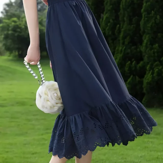 Welcome to a world of breezy elegance and timeless style with our Blue High Waist A-line Cotton Lace Patchwork Summer Skirt. Crafted with care and designed for comfort, this skirt is a perfect addition to your summer wardrobe.