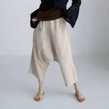 Women’s Linen Cotton Wide-Leg Casual Pants with Pockets