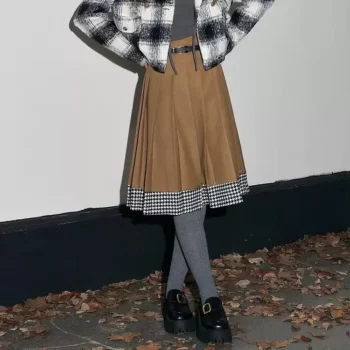 Elegant Mid-Length Plaid Skirt with Free Belt