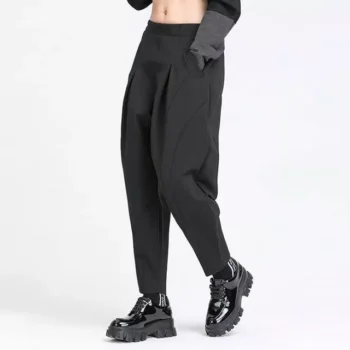 High Elastic Waist Black Harem Trousers