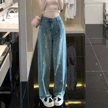 Spring/Summer Pearl-Embellished Baggy Jeans for Women