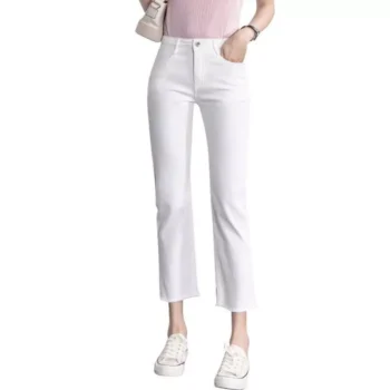 High-Waist Ankle-Length Straight Leg Women’s White Jeans