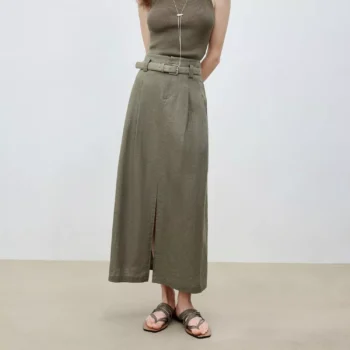 Summer Linen Cotton A-Line Midi Skirt with Triple Vents