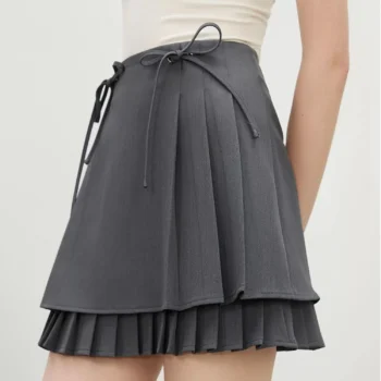 Minimalist Chic Grey Bow Tie Pleated A-Line Skirt for Women