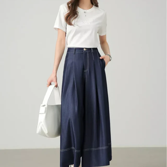 If you’re looking for a fashionable piece that offers both comfort and style, these cropped wide-leg trousers are the perfect pick. The non-stretch fabric and pleated front design ensure a structured yet comfortable fit, while the bright line decoration adds a pop of personality. Step out confidently, knowing you look as good as you feel.