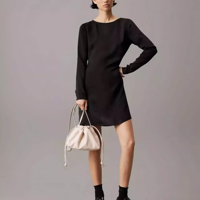 This Calvin Klein Jeans dress is more than just a stylish piece—it’s designed for the modern woman who wants both fashion and function. The clean, minimalist design makes it incredibly versatile, allowing you to dress it up for an evening out or keep it casual with a pair of boots or flats. The boat neckline gives it an elegant touch, while the long sleeves provide warmth, making it perfect for cooler weather. Whether paired with a chic jacket for the office or worn solo for a night on the town, this dress will easily become one of your go-to wardrobe staples.