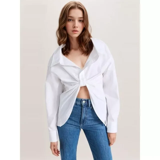 What makes this blouse special is its balance between comfort and chic style. The patchwork folds add a unique texture, making it stand out in a crowd. Its loose fit ensures ease of movement, while the fine blend of materials speaks to its quality and durability. It’s not just a blouse; it’s a piece that elevates your entire look.