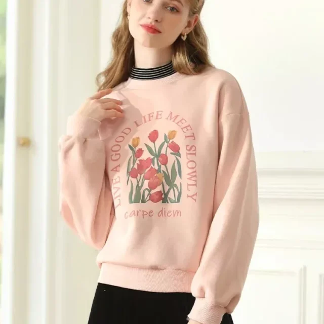 This hoodie is perfect for autumn and winter, providing both warmth and a chic appearance. Whether you’re dressing up for an office look or keeping it casual for weekend activities, this top offers the flexibility you need. Its straight cut and regular length make it suitable for pairing with jeans, skirts, or trousers, giving you endless outfit possibilities.
