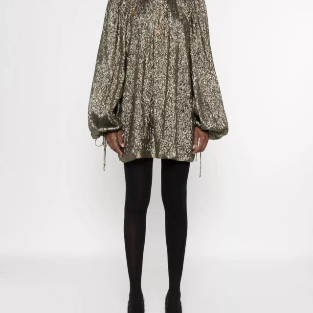 The Chloé Silk Lamé Mini Dress isn’t just a piece of clothing; it’s a statement of style and grace. Here’s why it’s a must-have for your wardrobe:
