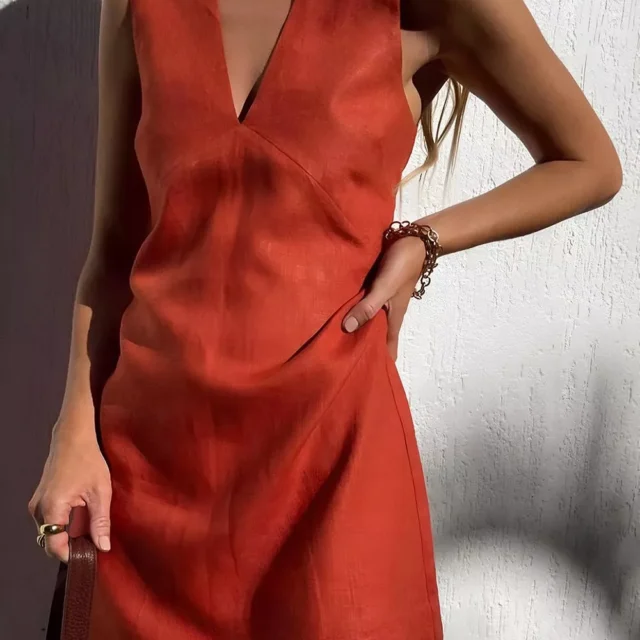 Slip into sunshine-ready elegance with this Cotton Linen V-Neck Sleeveless Mini Dress – your go-to outfit for those warm, carefree days. Designed to combine comfort and effortless chic, this dress features a flattering A-line silhouette and a breezy woven texture that feels as light as air. Whether you’re heading to brunch with friends, exploring a beachside town, or simply enjoying a summer stroll, this dress is your perfect companion. Made from a high-quality blend of 55% linen and 45% cotton, it keeps you cool and comfortable, even on the hottest days.