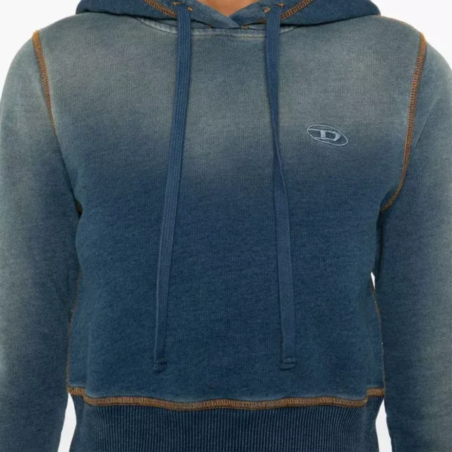 Diesel Cropped Cotton Hoodie – Navy Blue with Embroidered Oval D Logo