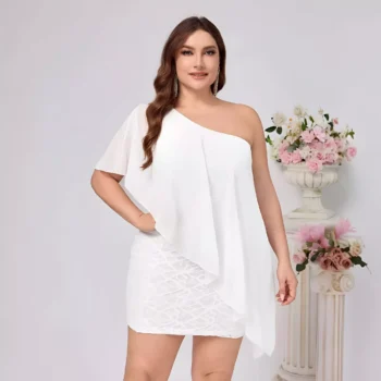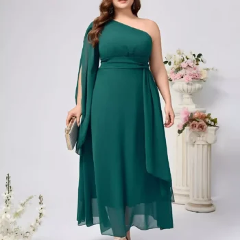 Summer 2025 Women’s Plus Size Chiffon Dress with Diagonal Neckline