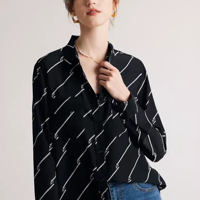 Step into the new season with the perfect balance of sophistication and comfort. This chic striped blouse is designed to bring a touch of luxury to your work wardrobe. Made from 100% Mulberry silk, it offers an ultra-soft feel against the skin, making it ideal for long office hours or casual outings. The turn-down collar and single-breasted closure bring a refined yet modern twist to a classic silhouette, perfect for the stylish office lady.