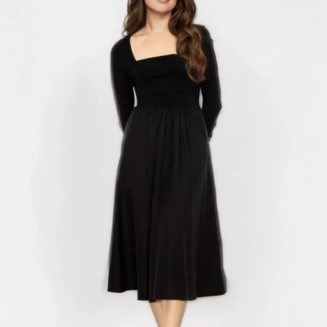 Embrace effortless elegance with this long-sleeve black A-line dress. Whether you’re dressing for work or an evening event, this dress offers the perfect combination of sophistication, comfort, and style. Order yours today and redefine elegance with every step!