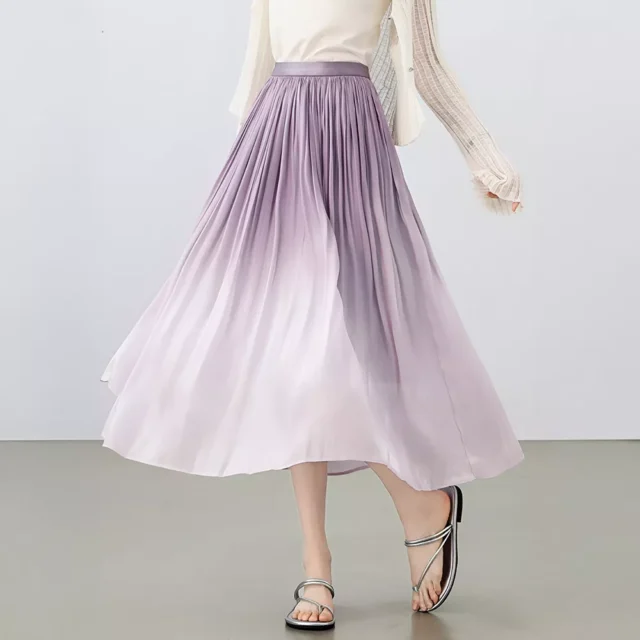 Step into summer with style in this stunning Gradient A-Line Midi Skirt – the perfect blend of elegance, comfort, and seasonal charm. Designed with sophistication in mind, this skirt brings a fresh, graceful look for women who love classic fashion with a modern twist. The flowing silhouette and soft gradient color effect turn every step into a gentle statement. Whether you’re heading to the office, a summer party, or a casual brunch, this skirt makes you feel polished and confident without trying too hard.