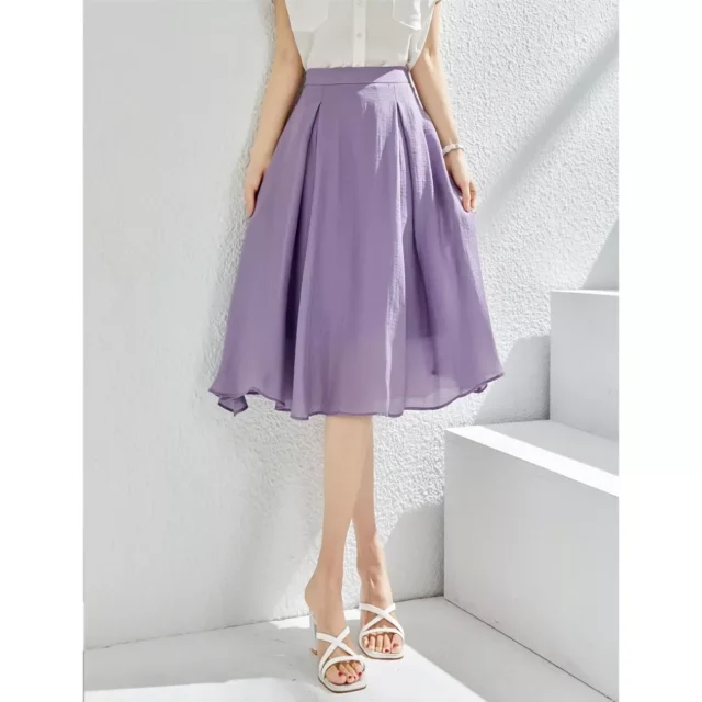 This skirt is not just about style; it’s also about comfort and versatility. The combination of polyester and lyocell materials ensures durability and a lightweight feel, making it perfect for daily wear. Its solid purple hue can be easily paired with various tops, from blouses to casual tees, giving you endless styling options.
