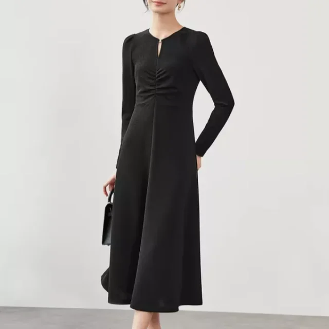 Elevate your wardrobe with the Elegant Hollow Out A-Line Knit Dress, designed for women who appreciate refined simplicity and timeless fashion. This sophisticated dress features a high-stretch, form-flattering silhouette with delicate fold details, a classic O-neckline, and long sleeves for a polished look. Perfect for the autumn season, it blends comfort and elegance effortlessly, making it a go-to choice for office wear, social events, or an elevated everyday outfit.