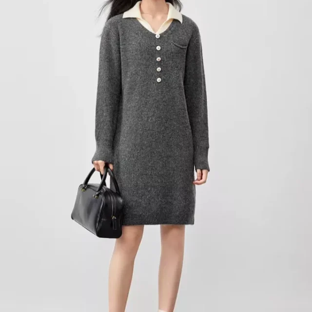 Stay effortlessly stylish and cozy this season with this elegant straight spliced knitted dress. Designed for modern women who seek a balance between sophistication and comfort, this mid-length dress features a classic turn-down collar, subtle patchwork details, and a relaxed silhouette. Whether you’re heading to work, a business meeting, or a casual gathering, this dress makes an easy statement with its refined yet comfortable design.