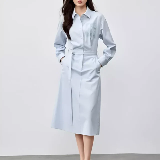 Elegant Lyocell Cotton Shirt Dress – Spring A-Line Embroidered Midi Dress