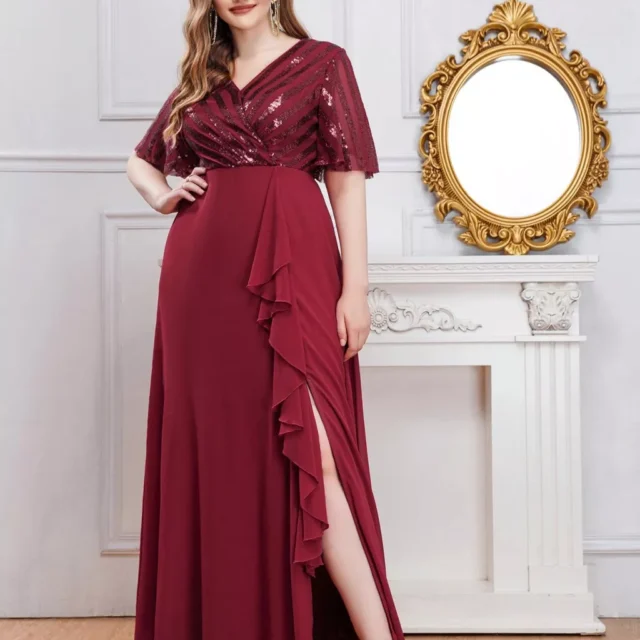This Elegant Plus Size V-Neck Dress is more than a piece of clothing—it’s a statement of confidence, grace, and sophistication. Its timeless design, premium material, and carefully crafted details make it a must-have for any formal occasion. From its flattering V-neckline to its sequined accents, this dress is designed to make you shine.