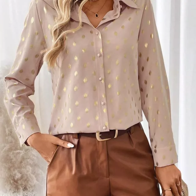 Elevate your everyday wardrobe with our Elegant Polka Dot Long Sleeve Blouse, the perfect blend of vintage charm and modern sophistication. Designed for the woman who values style, comfort, and versatility, this button-up blouse brings effortless elegance to your daily look. With a timeless polka dot print, soft polyester fabric, and a relaxed yet polished fit, this blouse is your go-to choice for both office wear and casual outings.
