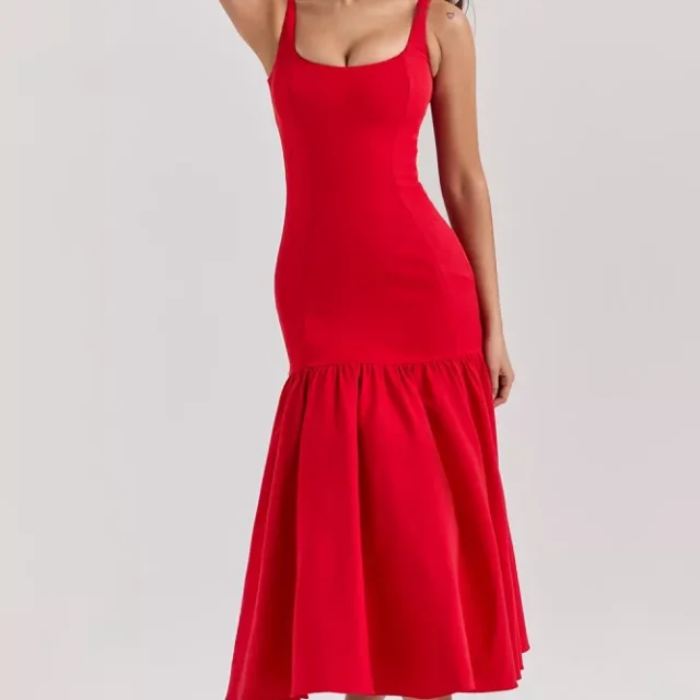 Step into the spotlight this summer with our Elegant Red Midi Party Dress, designed to elevate your style for any special occasion. Featuring a stunning long ruffle hem and a flattering slim fit, this dress is a must-have addition to your wardrobe. Whether you’re attending a party, a wedding, or celebrating a birthday, this dress guarantees all eyes will be on you.