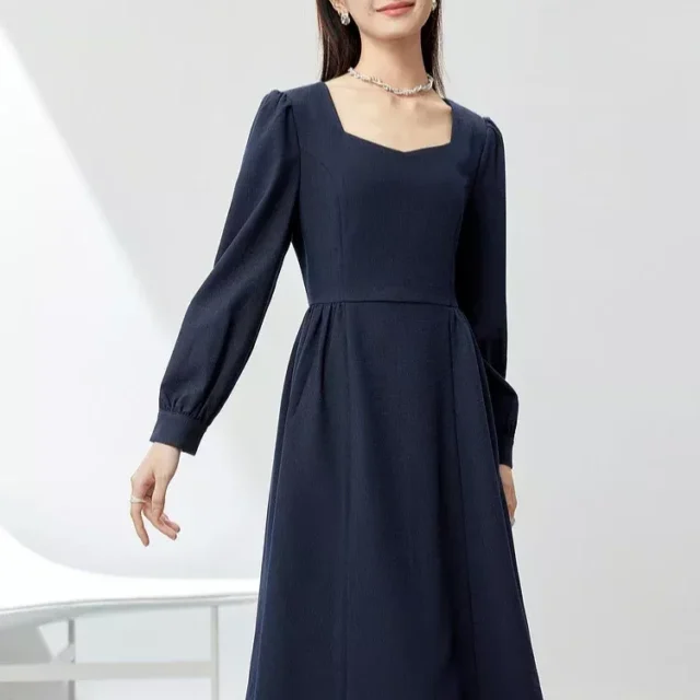 Made with high-quality polyester and spandex, this dress offers durability with a smooth, lightweight feel. The square neckline exudes sophistication, enhancing your collarbone for a polished, elegant look. Its long sleeves and knee-length design make it an ideal choice for transitioning between seasons, keeping you stylish and comfortable in spring and beyond. The hidden zipper detail adds a touch of functionality without disrupting the sleek silhouette.