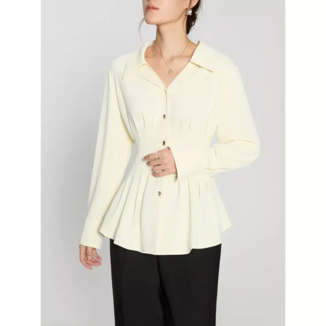 Crafted from high-quality polyester fabric, this blouse is soft, lightweight, and durable, making it ideal for the autumn and winter seasons. The full-length sleeves and single-breasted closure give it a sophisticated look, while the pleated waist detail provides a feminine silhouette. Designed with the office lady in mind, this top is both functional and fashionable, suitable for professional and casual settings.