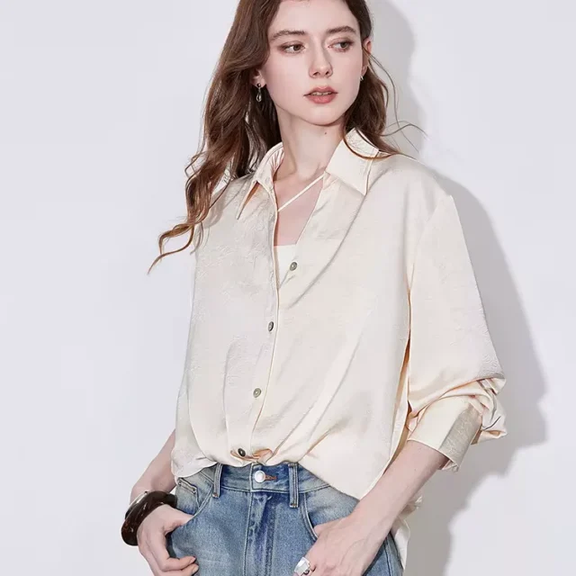 This blouse is a must-have for any woman looking to add a touch of luxury to her wardrobe. Its blend of modern style and classic design makes it the perfect choice for both work and play. The loose fit ensures comfort, while the mid-length and turn-down collar give it a timeless, professional appearance. Whether you’re dressing for a meeting or a night out, this versatile blouse has you covered.