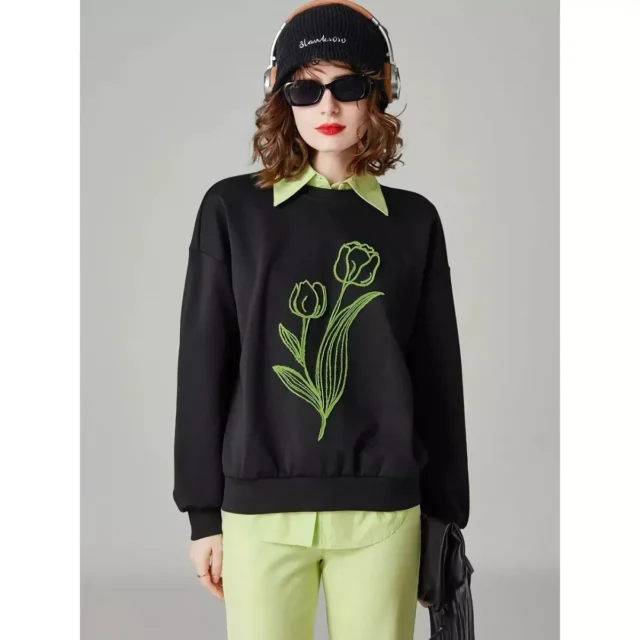 Don’t miss out on adding this Fashionable Women’s Floral Embroidered Loose Fit Pullover Hoodie to your autumn wardrobe. Embrace the perfect combination of comfort, style, and elegance. Order yours today and experience the blend of casual chic and unique fashion.