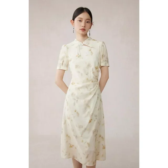 Unlike traditional Cheongsams, this dress is crafted with modern needs in mind, combining the classic charm of Chinese fashion with contemporary trends. The non-stretch polyester fabric ensures the dress holds its shape and elegance throughout the day. The floral embroidery, a symbol of femininity and grace, makes each dress unique, ensuring you stand out in any crowd.