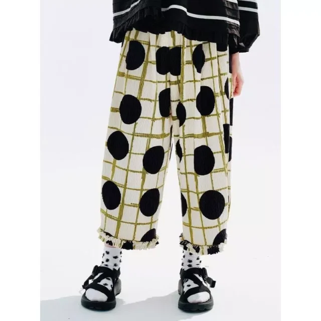 • Chic Design: Featuring a trendy green plaid pattern with playful black wave dots, these pants are an epitome of contemporary style.