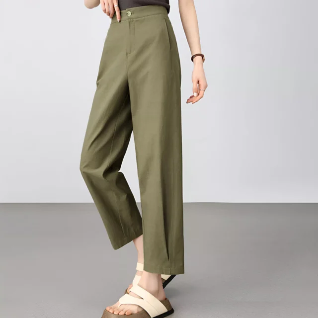 High-Waist Lyocell Cotton Office Pants for Women – Ankle-Length, Straight Fit