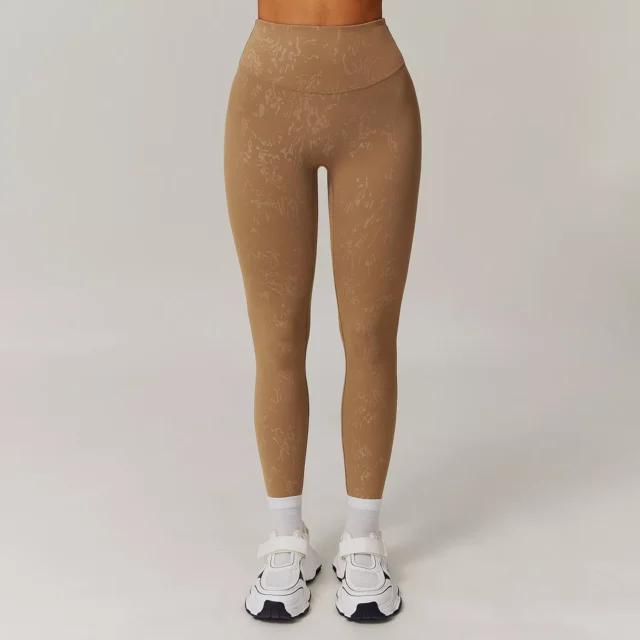 Crafted from a high-quality blend of nylon and spandex, these leggings offer a buttery-soft, second-skin feel. The elastic waistband ensures a snug, secure fit that stays in place no matter how intense your workout gets. The breathable and moisture-wicking fabric keeps you cool and dry, making them suitable for all seasons.