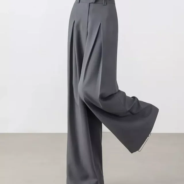 What sets these trousers apart is their effortless fusion of tailored professionalism and understated glamour. The pleated detailing adds a tailored touch without feeling stiff, and the wide-leg cut offers freedom of movement while keeping the look refined. The non-stretch fabric ensures your trousers retain their shape — no sagging or shifting, just all-day polish.