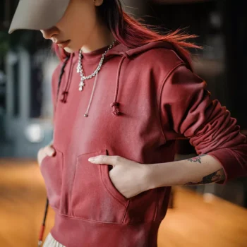 Red Tie-Dye Slim Fit Hooded Pullover for Women – Autumn Winter Knit Top