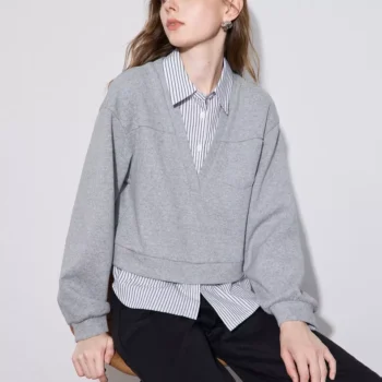 Striped Two-Piece Look Turn-Down Collar Winter Sweatshirt for Women