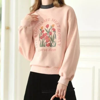 Apricot Sunflower Embroidered Pullover Sweatshirt for Women – Autumn Winter