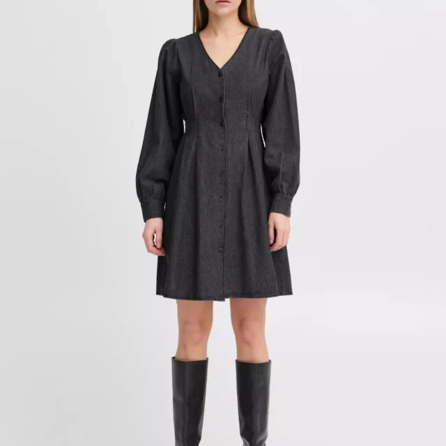 Effortless Elegance with Ichi Women’s Black Marl V-Neck Dress