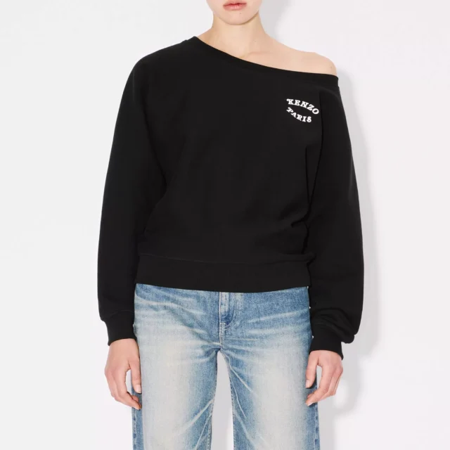 Designed with a ribbed boatneck collar, ribbed cuffs, and hem, this sweatshirt stays close to the body in all the right places while offering room to move. On the front, a clean Kenzo monogram gives it signature edge, while the back explodes with a bold maxi print in true graphic fashion. Whether you’re layering it up or wearing it solo, this piece offers a balance of classic shape and unexpected visual energy.