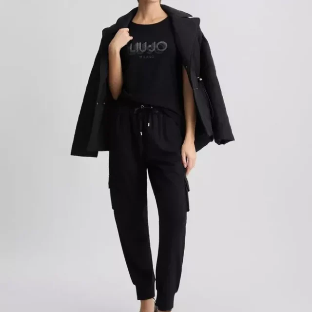 The Liu Jo black printed tee blends fashion and function in a way few basics can. It’s lightweight, breathable, and endlessly versatile—perfect for pairing with jeans, shorts, skirts, or layered under jackets. With this T-shirt, you’re not just wearing a piece of clothing—you’re making a statement.