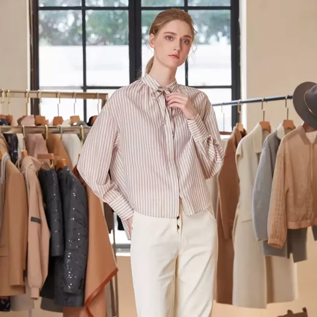 Indulge in the epitome of luxury and elegance with our high-quality striped blouse, perfect for the sophisticated woman. This autumn blouse, crafted from a premium blend of 70% cotton and 30% silk, offers a harmonious balance of comfort and style. Whether you’re heading to the office or enjoying a casual day out, this blouse will effortlessly enhance your ensemble.