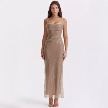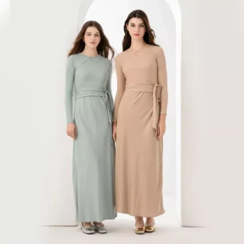 High Stretch Ribbing Wrap Top & Matte Satin Maxi Dress Set