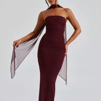 Elegant Strapless Sparkle Maxi Dress with Long Flare Sleeves for Women