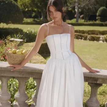 Elegant Spaghetti Strap Printed Maxi Dress – Sexy Backless Long Dress for Summer