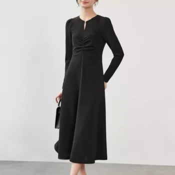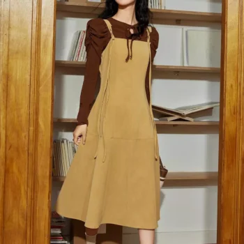 PU Leather Strap A-Line Sleeveless Dress, French Style Long Autumn Dress