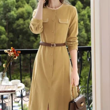 Elegant V-Neck Knit Sweater Dress