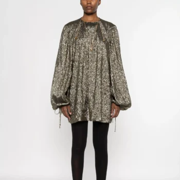 Chloé Silk Lamé Mini Dress with Puff Sleeves